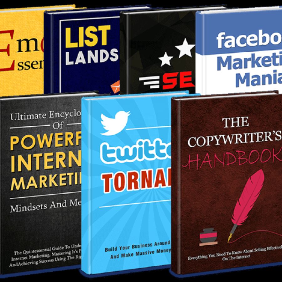 • Organisierte Abschnitte: Produkt, E-Mail-Grundlagen, Twitter-Tornado, Facebook-Marketing-Manie, Das Handbuch für Copywriter, Listenlawine, Ultimative Enzyklopädie des leistungsstarken Internetmarketings, SEO-Sergeant, 1, Cover, Artikel, E-Book