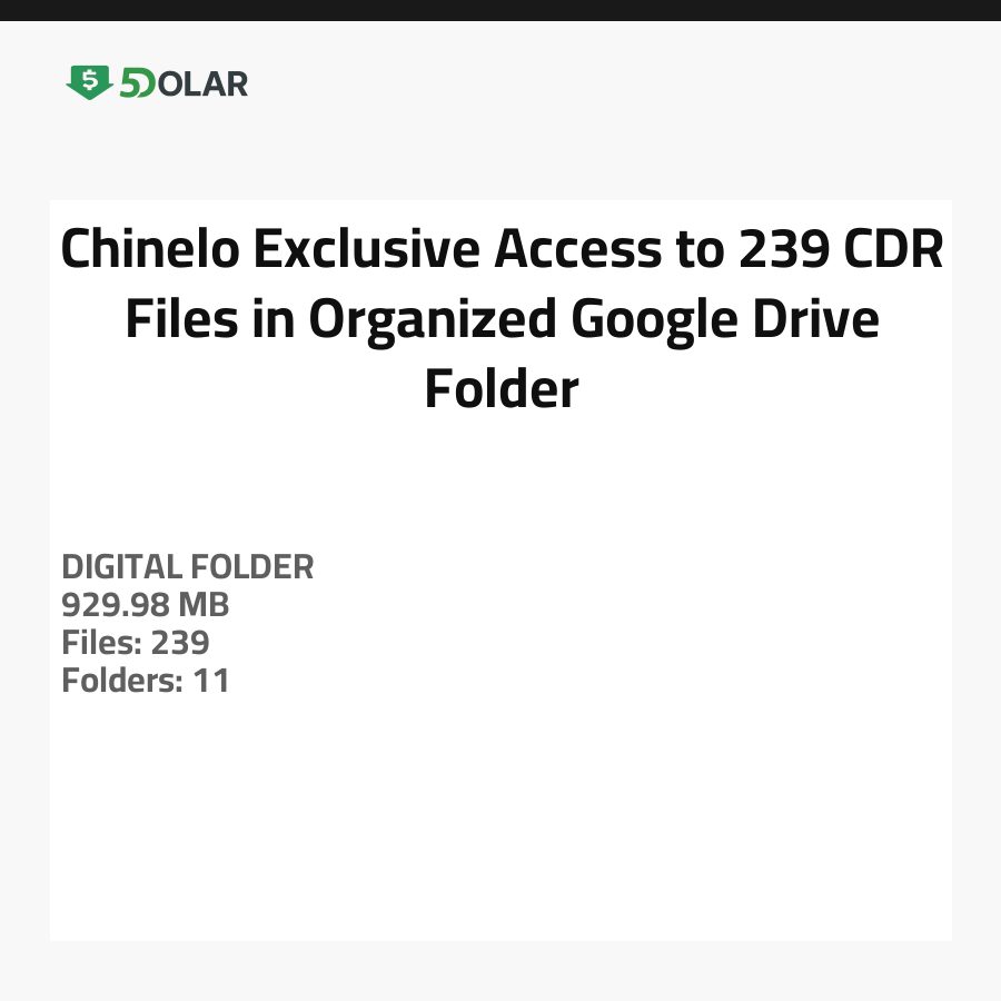 Chinelo Google Drive klasörümüzle yaratıcılığın hazine sandığını açın; 239 yüksek kaliteli CDR dosyasının kapsamlı bir koleksiyonunu içerir. Tasarımcılar ve meraklılar için mükemmel olan bu klasör, tam olarak ihtiyacınız olanı kolayca bulmanızı sağlamak için titizlikle 11 temalı alt klasöre ayrılmıştır.
